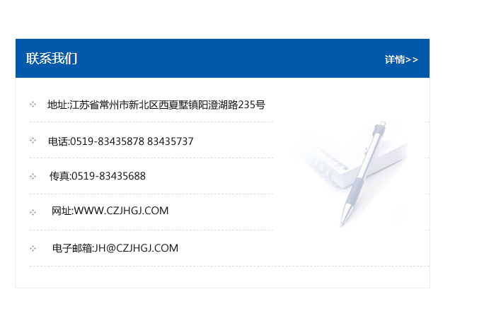 傳真:0519-83435688    郵編:213135    網址:WWW.czjhgj_com.laiwugc.com    電子郵箱:JH@czjhgj_com.laiwugc.com